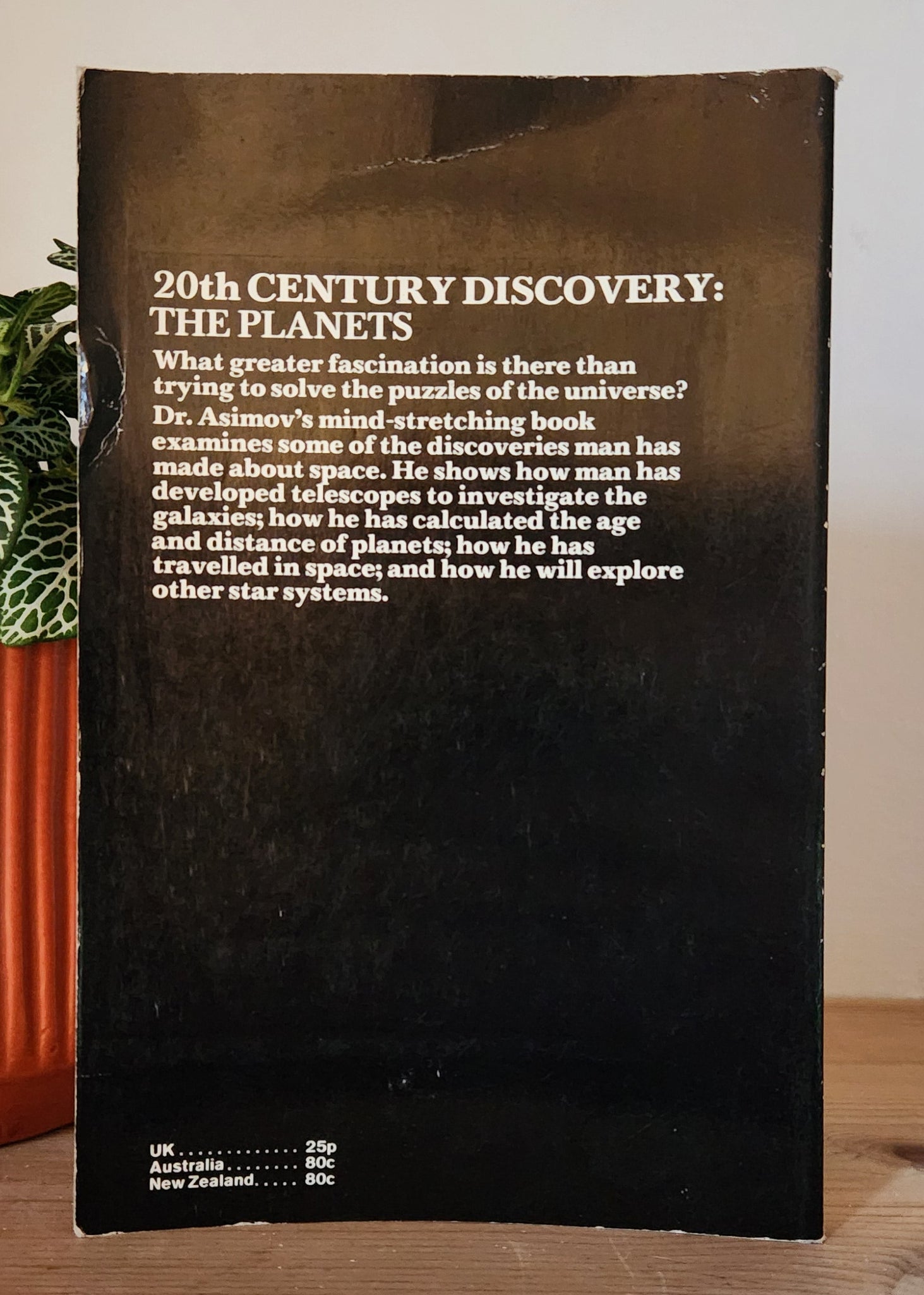 Dr Asimov's mind-stretching book examines some of the discoveries man has made about space. He shows how man has developed telescopes to investigate the galaxies, how he has calculated the age and distance of planets, how he has travelled in space, and how he will explore other star systems.