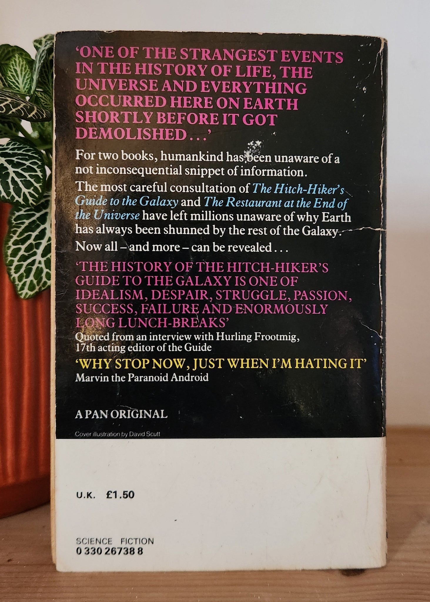 The unhappy inhabitants of planet Krikkit are sick of looking at the night sky above their heads–so they plan to destroy it. The universe, that is. Now only five individuals stand between the killer robots of Krikkit and their goal of total annihilation. They are Arthur Dent, a mild-mannered space and time traveler who tries to learn how to fly by throwing himself at the ground and missing; Ford Prefect, his best friend, who decides to go insane to see if he likes it; Slartibartfast, the indomitable vice president of the Campaign for Real Time, who travels in a ship powered by irrational behavior; Zaphod Beeblebrox, the two-headed, three-armed ex-president of the galaxy; and Trillian, the sexy space cadet who is torn between a persistent Thunder God and a very depressed Beeblebrox. How will it all end? Will it end? Only this stalwart crew knows as they try to avert “universal” Armageddon and save life as we know it–and don’t know it!