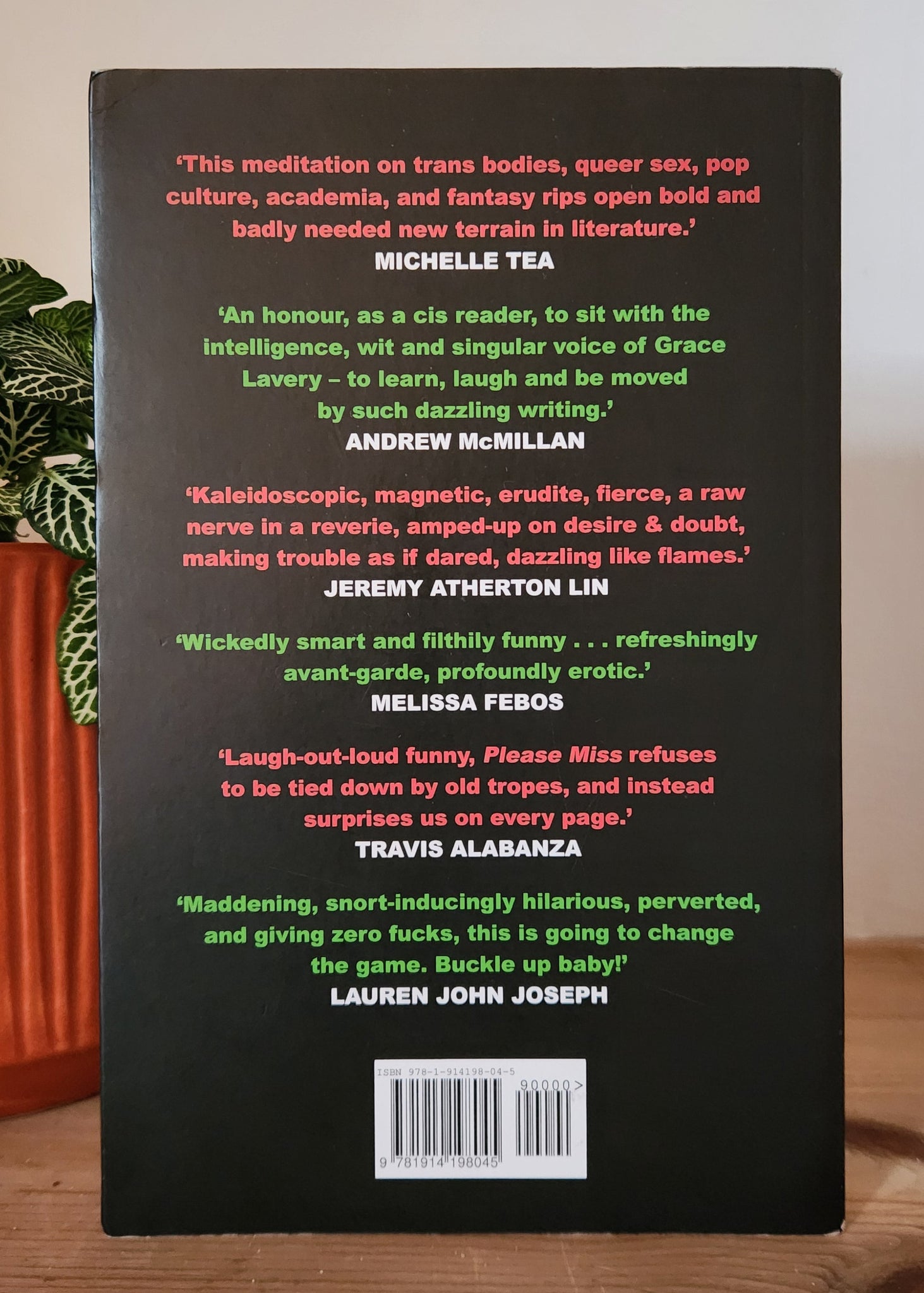 As Grace fumbles toward a new trans identity, she tries on dozens of different voices, creating a coat of many colours. The result is dazzling, unique and unforgettable. Startlingly funny and ruthlessly smart, Please Miss gives us what we came for, then slaps us in the face and orders us to come again.
