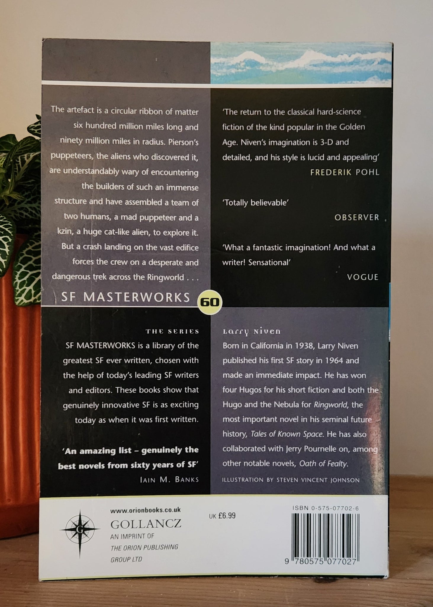 The artefact is a circular ribbon of matter six hundred million miles long and ninety million miles in radius. Pierson's puppeteers, the aliens who discovered it, are understandably wary of encountering the builders of such an immense structure and have assembled a team of two humans, a mad puppeteer and a kzin, a huge cat-like alien, to explore it. But a crash landing on the vast edifice forces the crew on a desperate and dangerous trek across the Ringworld.