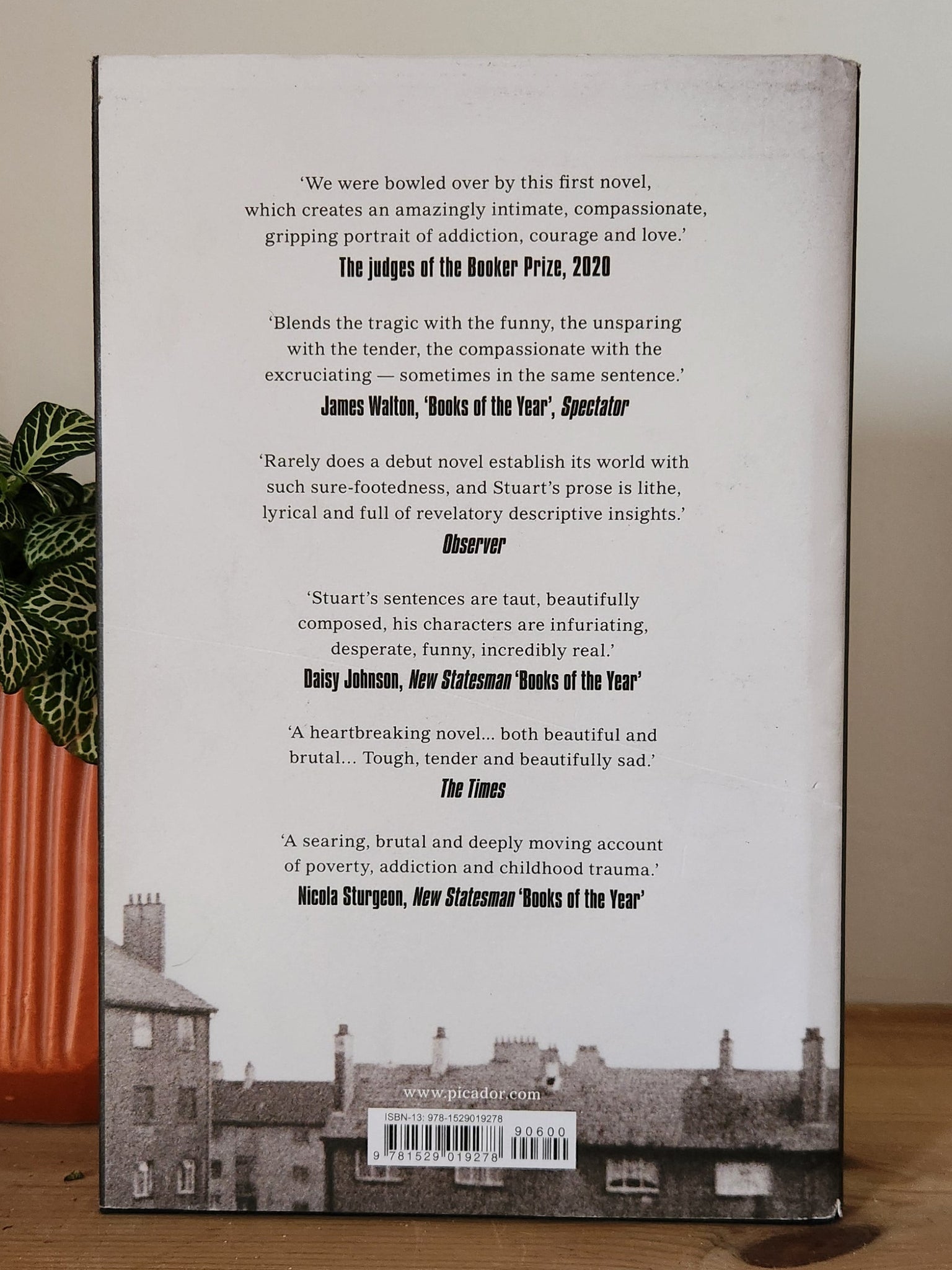 Shuggie's mother Agnes walks a wayward path: she is Shuggie's guiding light but a burden for him and his siblings. She dreams of a house with its own front door while she flicks through the pages of the Freemans catalogue, ordering a little happiness on credit, anything to brighten up her grey life. Married to a philandering taxi-driver husband, Agnes keeps her pride by looking good--her beehive, make-up, and pearly-white false teeth offer a glamourous image of a Glaswegian Elizabeth Taylor. But under the surface, Agnes finds increasing solace in drink, and she drains away the lion's share of each week's benefits--all the family has to live on--on cans of extra-strong lager hidden in handbags and poured into tea mugs.
