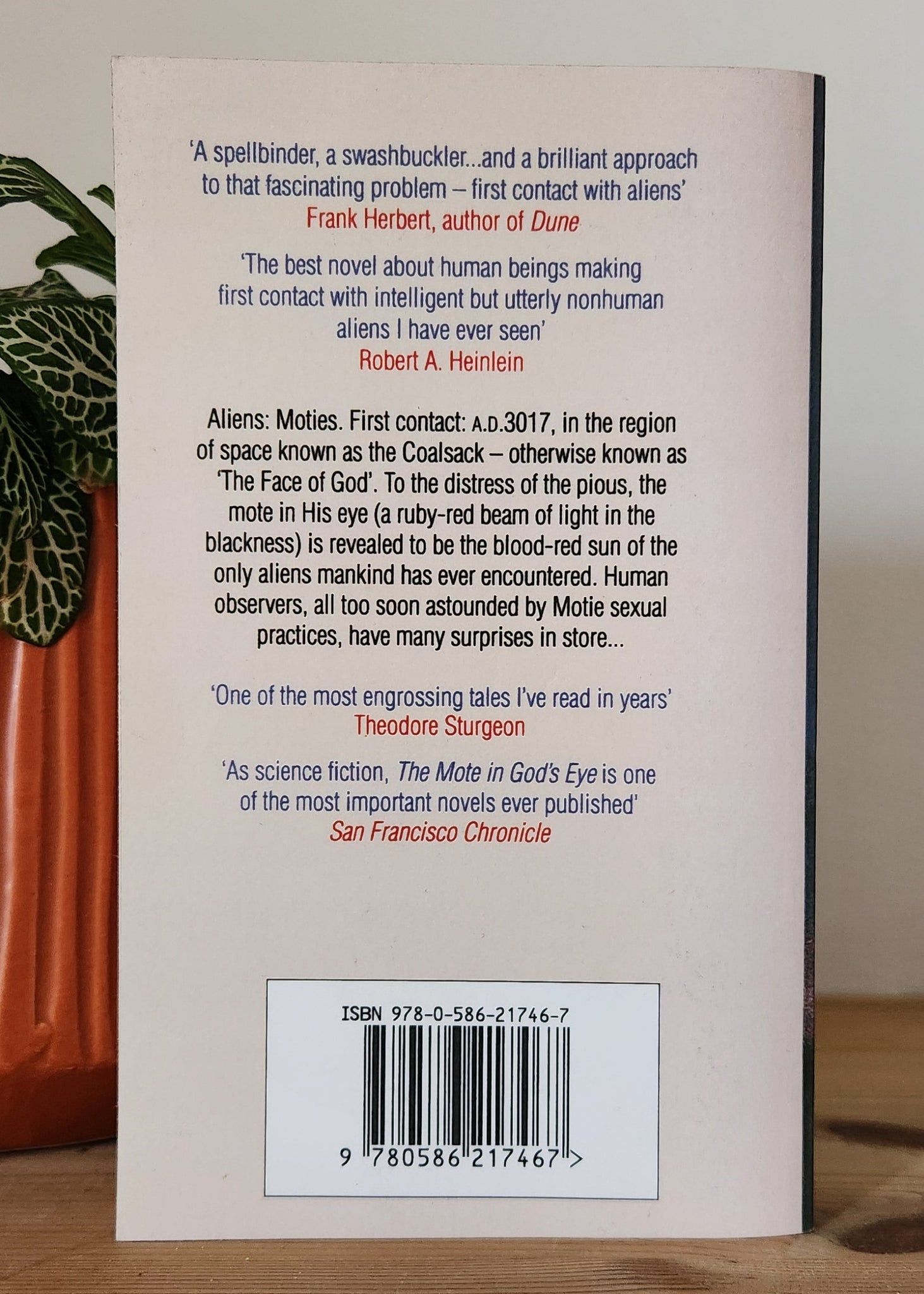 In 3016, the 2nd Empire of Man spans hundreds of star systems, thanks to faster-than-light Alderson Drive. Intelligent beings are finally found from the Mote, an isolated star in a thick dust cloud. The bottled-up ancient civilization, at least one million years old, are welcoming, kind, yet evasive, with a dark problem they have not solved in over a million years.